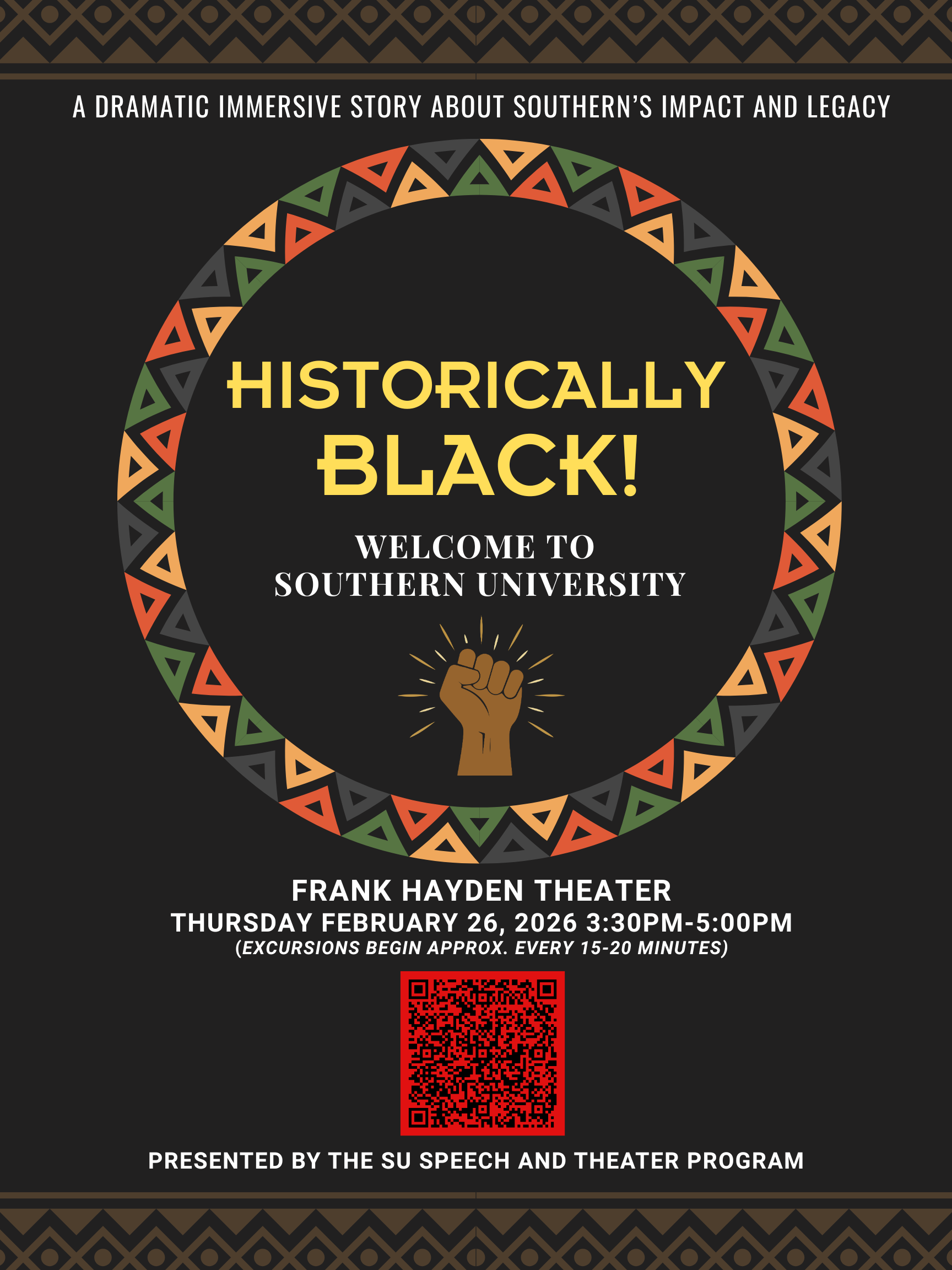 Come aboard the SS Hayden and journey through time and space to learn the history and impact of Southern University on a local and national stage. As an immersive installation with live performance, Voyage on the Hayden uses intergenerational storytelling to explore the connection between memory, identity, and legacy. Come and experience the stories of Southern's rich history and legacy.