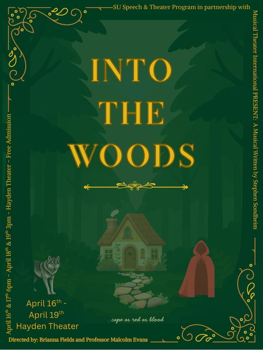 As part of the Spring Student Director Spotlight, SU Theater proudly engages with MTI to present Stephen Sondheim’s Into the Woods, co-directed by student director Brianna Fields and Professor Malcolm Evans. This production showcases student leadership and artistic vision while bringing Sondheim’s beloved, thought‑provoking musical to life through imaginative storytelling and collaborative performance.